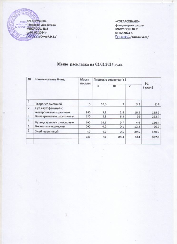 Контрольное меню на 02.02.2024