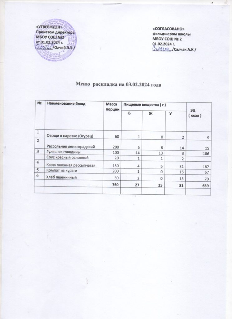 Контрольное меню на 03.02.2024