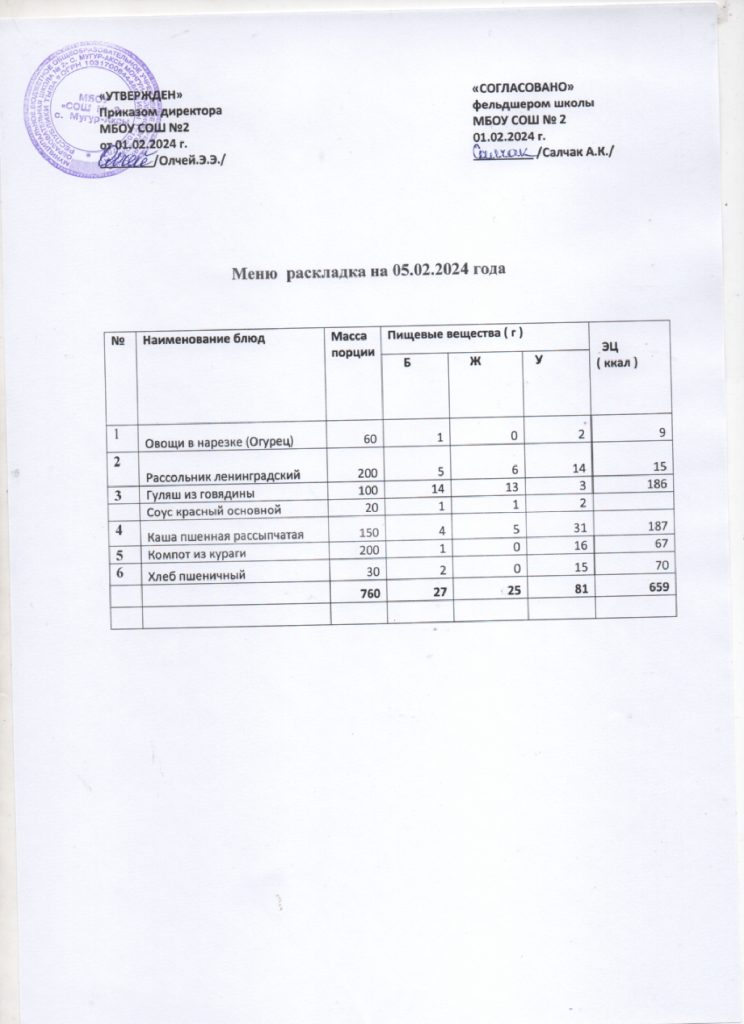 Контрольное меню на 05.02.2024