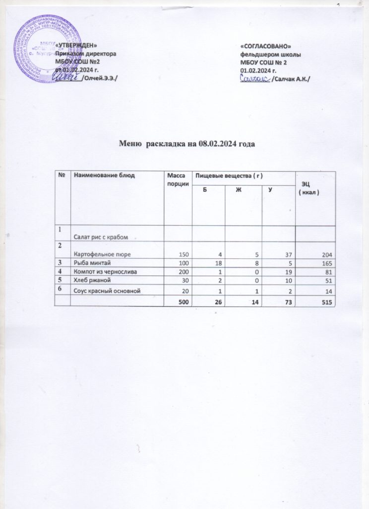 Контрольное меню на 08.02.2024