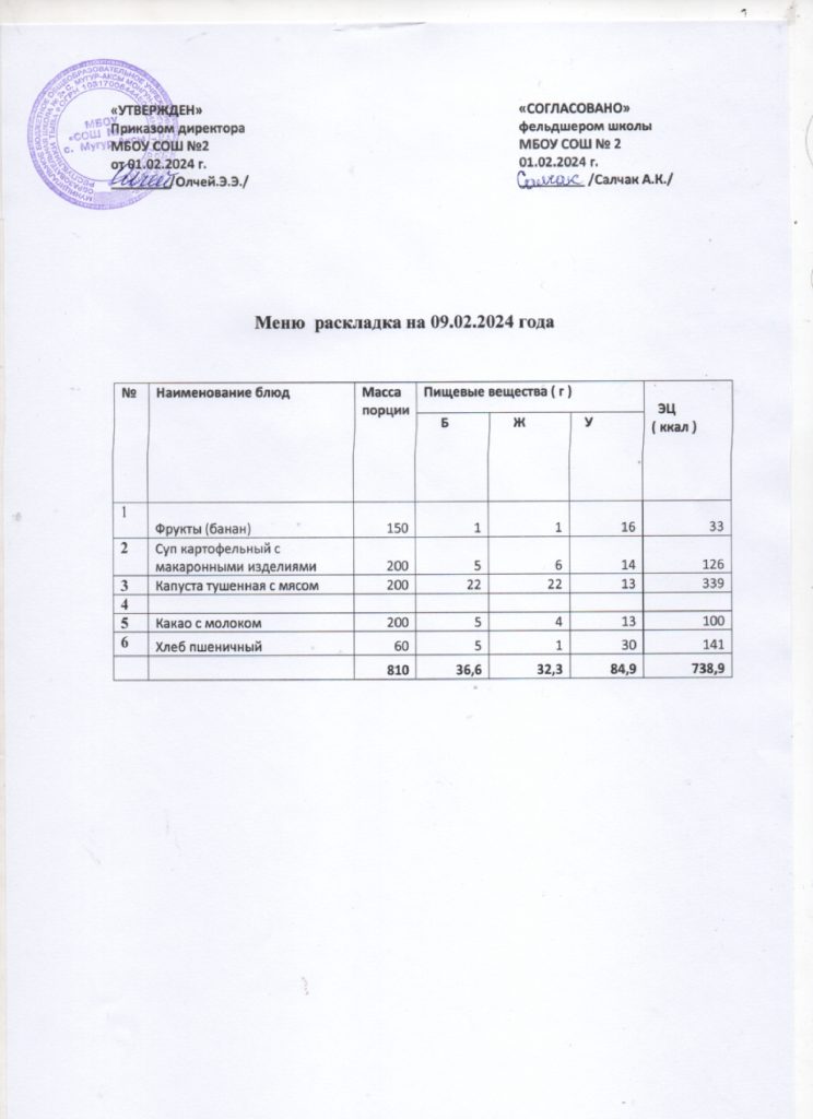 Контрольное меню на 09.02.2024
