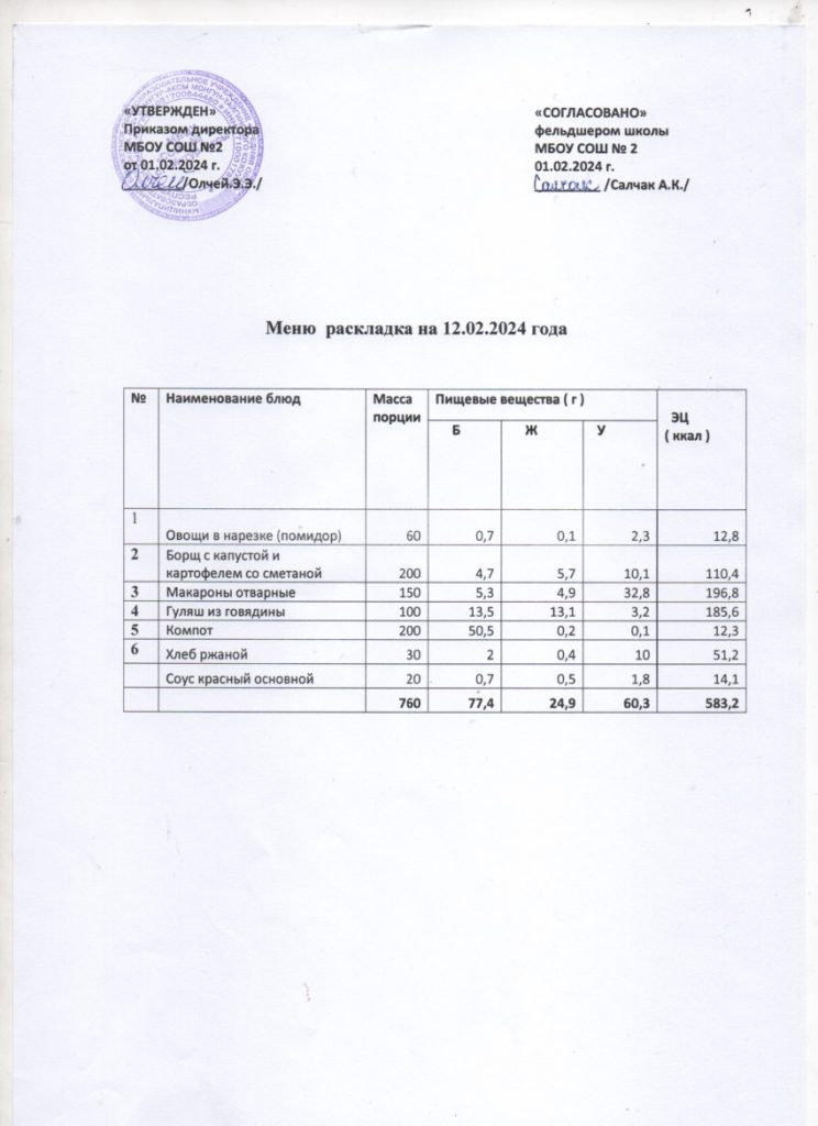 Контрольное меню на 12.02.2024