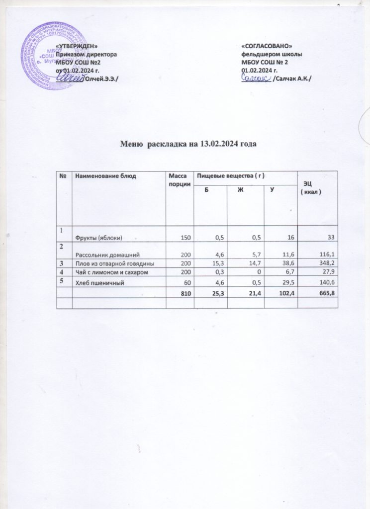Контрольное меню на 13.02.2024