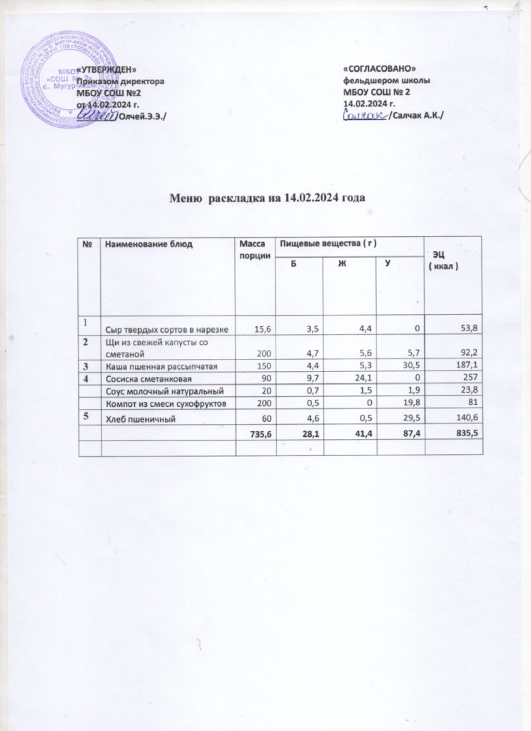 Контрольное меню на 14.02.2024