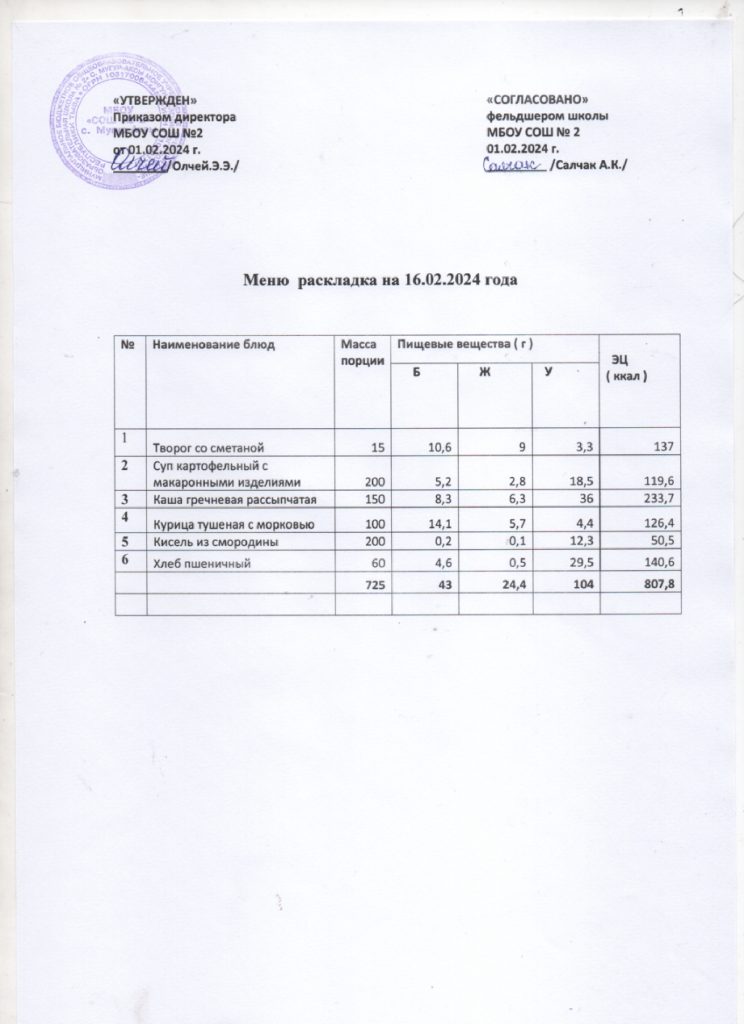 Контрольное меню на 16.02.2024