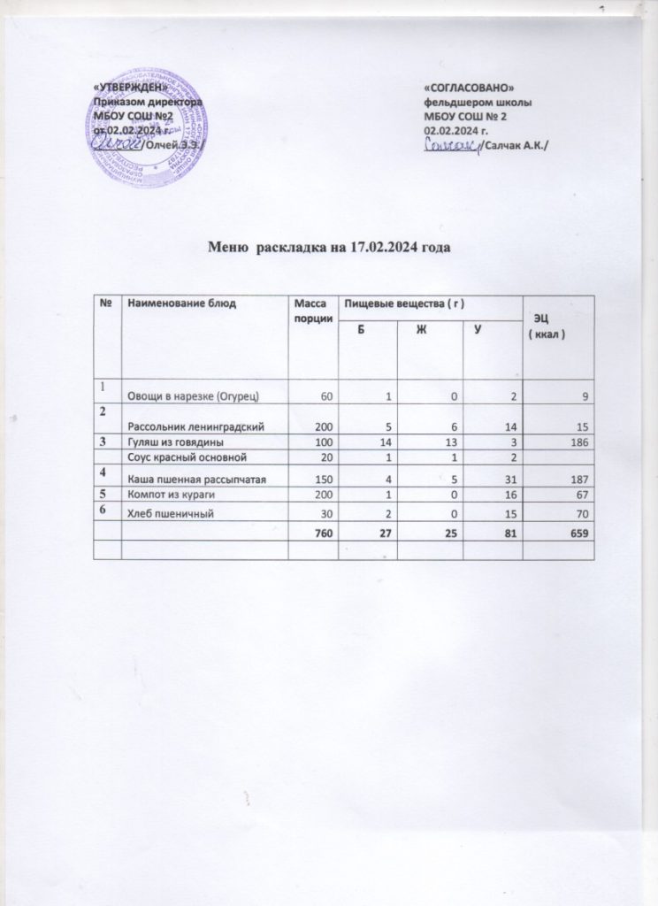 Контрольное меню на 17.02.2024