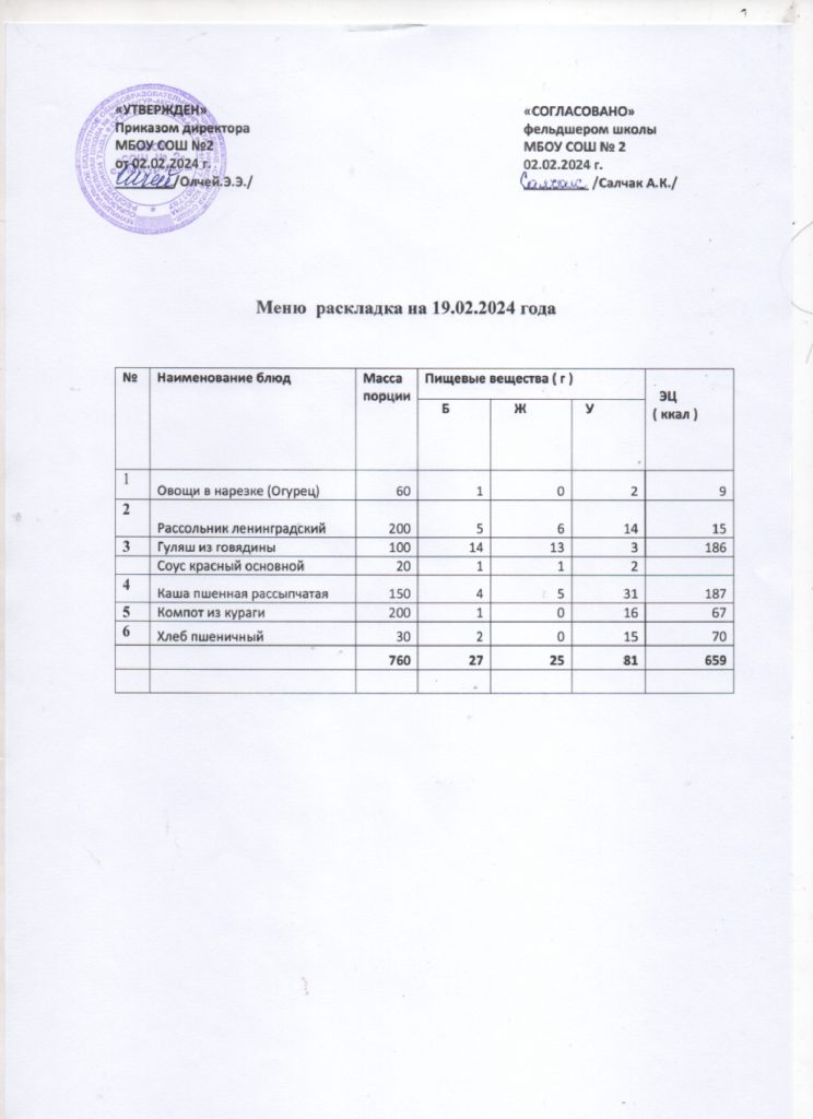 Контрольное меню на 19.02.2024