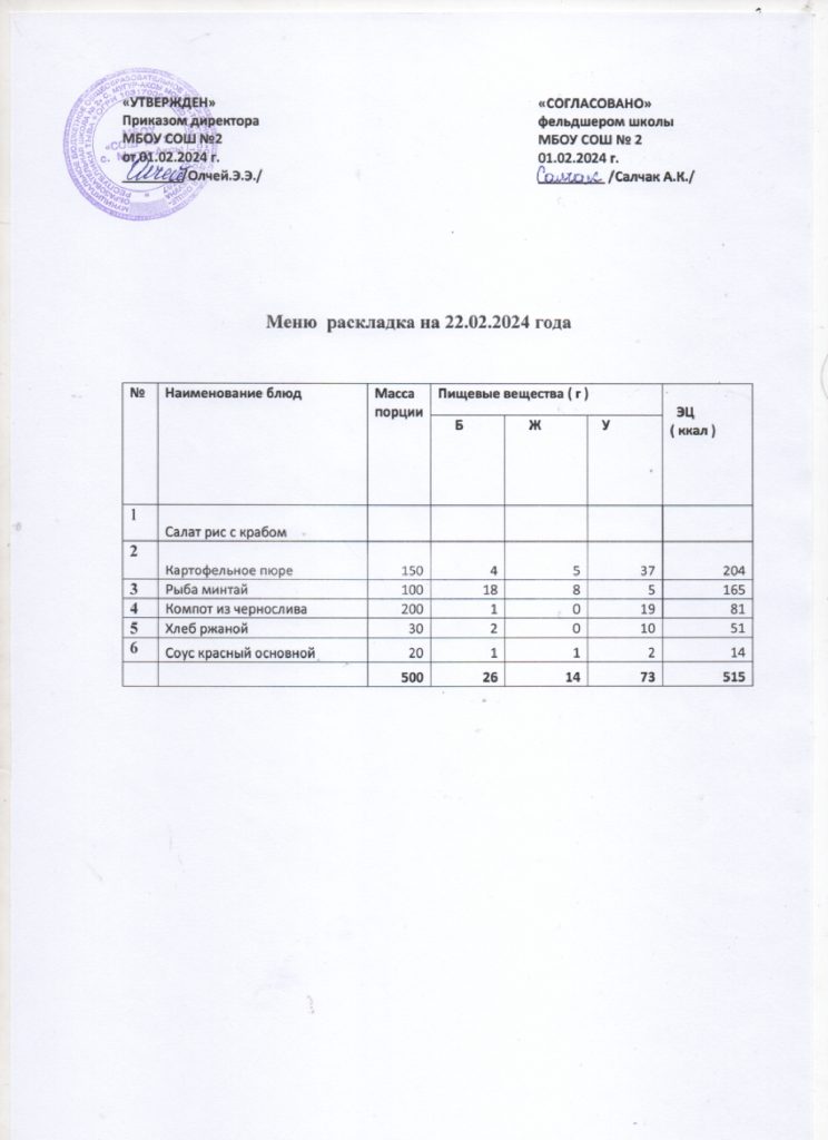 Контрольное меню на 22.02.2024