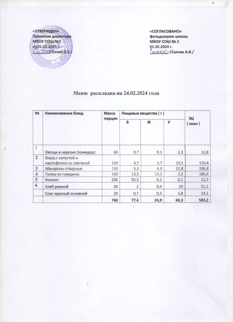 Контрольное меню на 24.02.2024