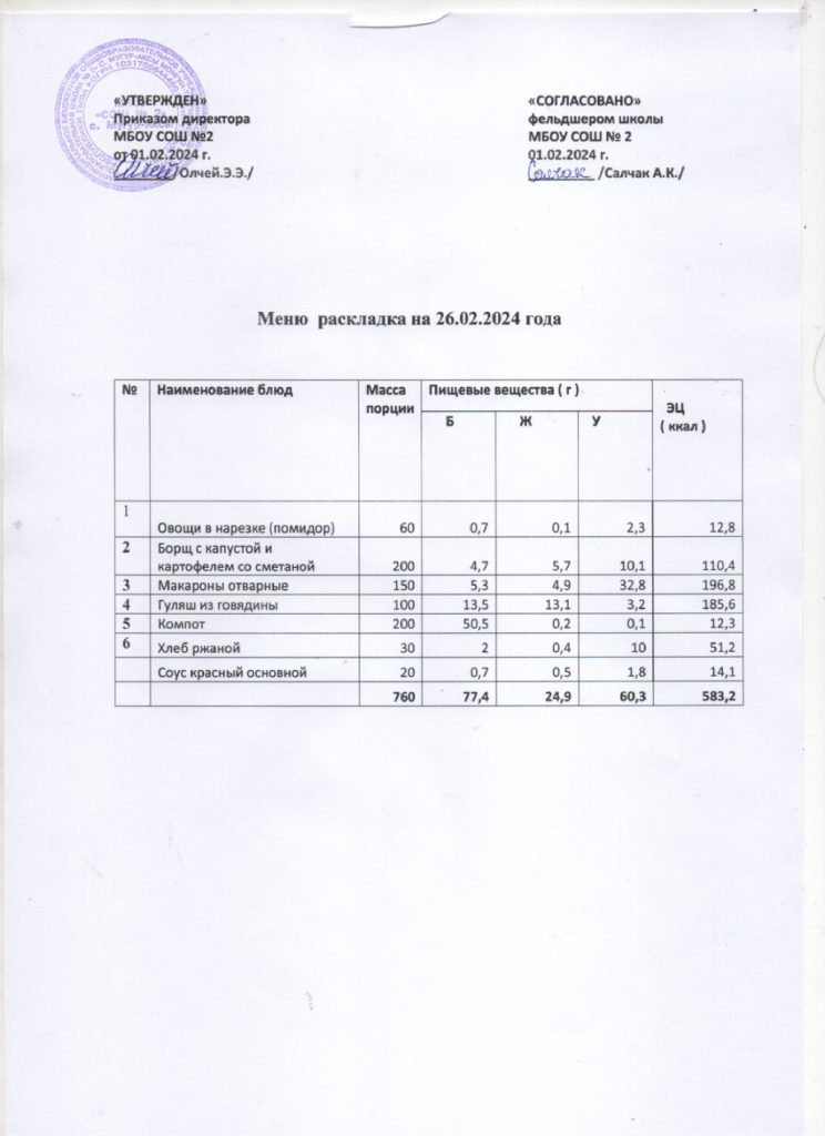 Контрольное меню на 26.02.2024