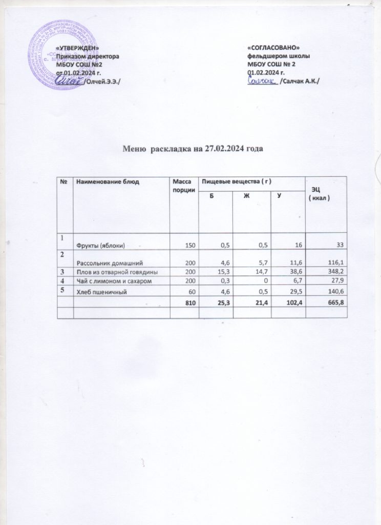 Контрольное меню на 27.02.2024
