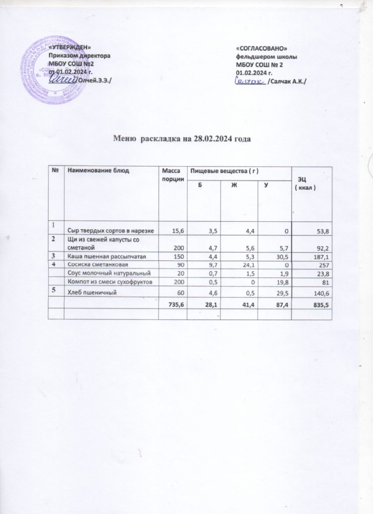 Контрольное меню на 28.02.2024