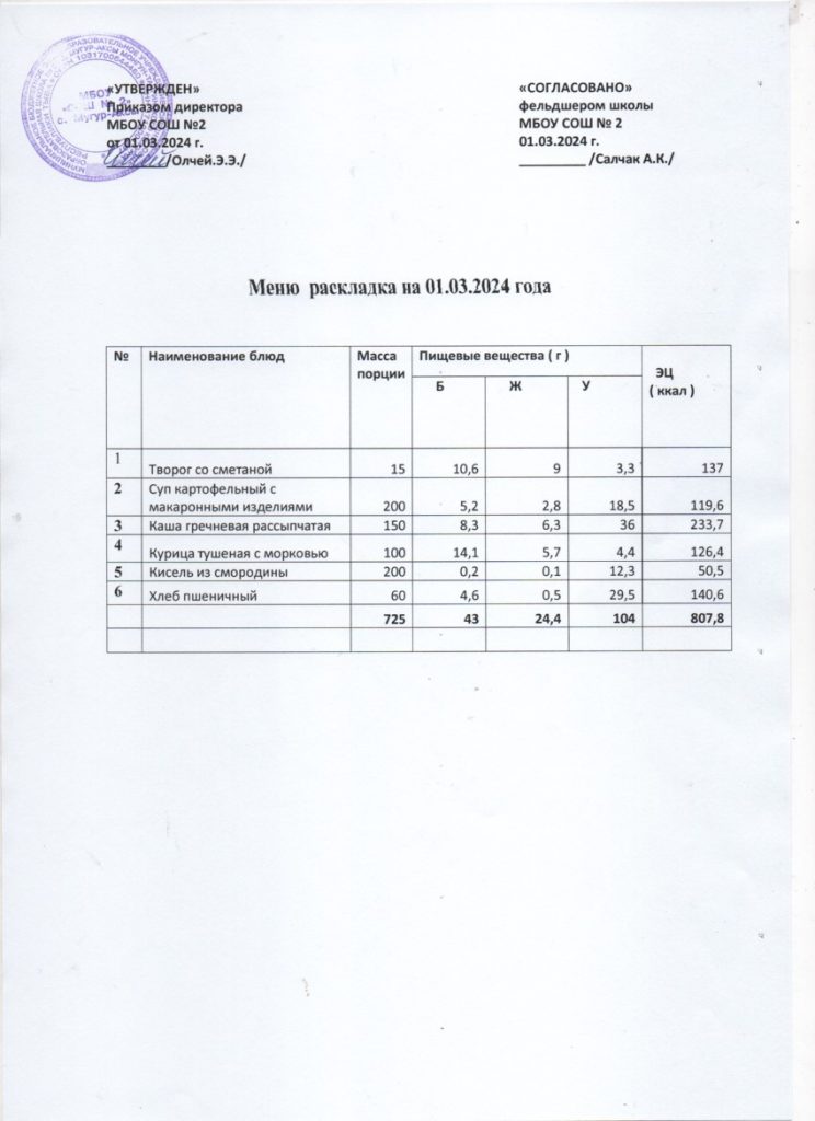 Контрольное меню на 01.03.2024