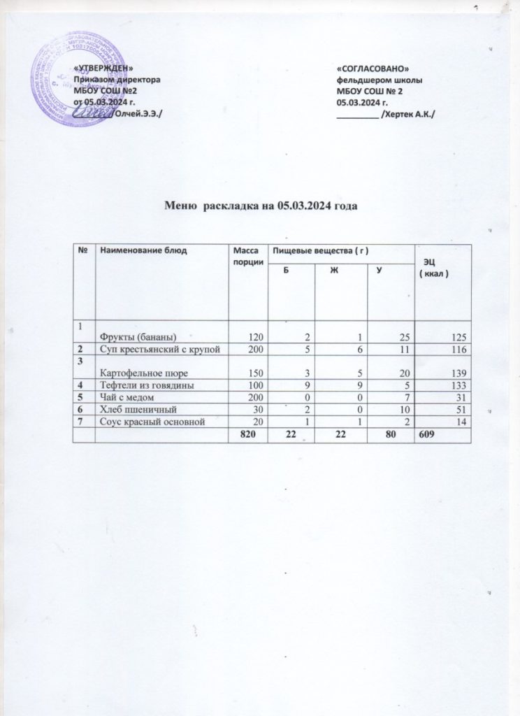 Контрольное меню на 05.03.2024