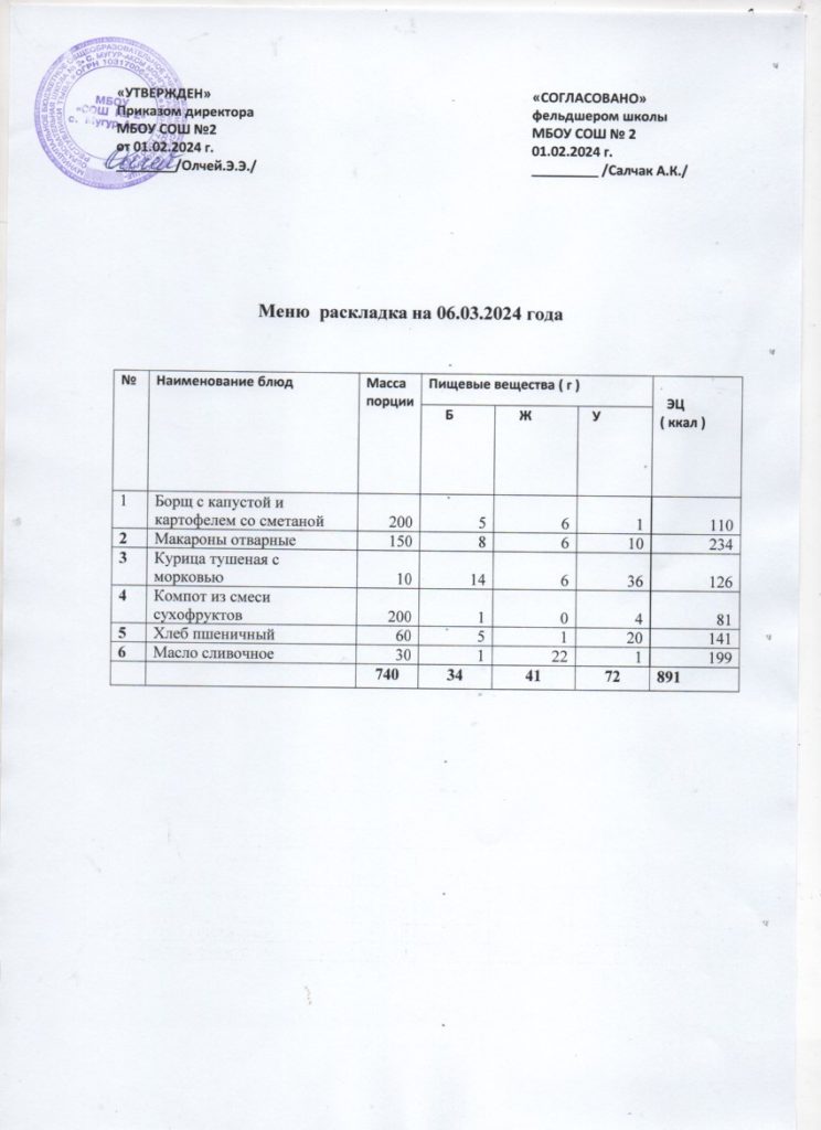 Контрольное меню на 06.03.2024