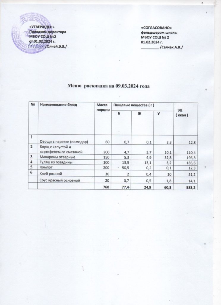 Контрольное меню на 09.03.2024