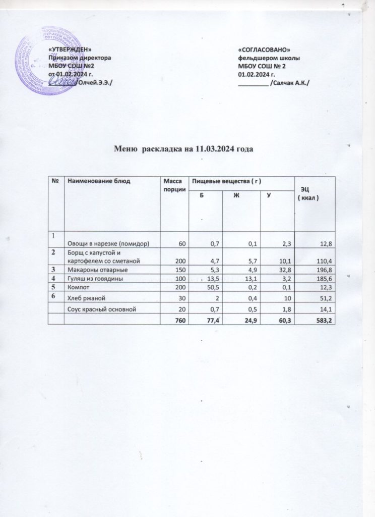 Контрольное меню на 02.03.2024