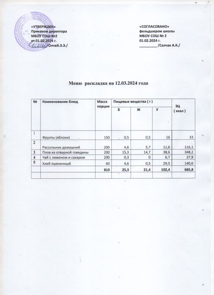 Контрольное меню на 12.03.2024