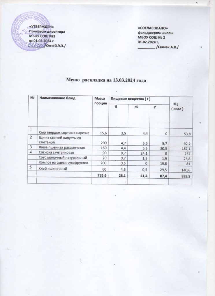 Контрольное меню на 13.03.2024