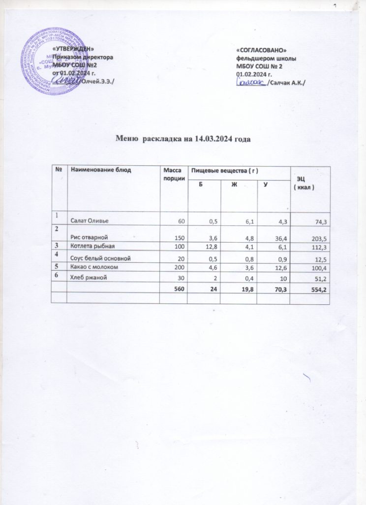 Контрольное меню на 14.03.2024