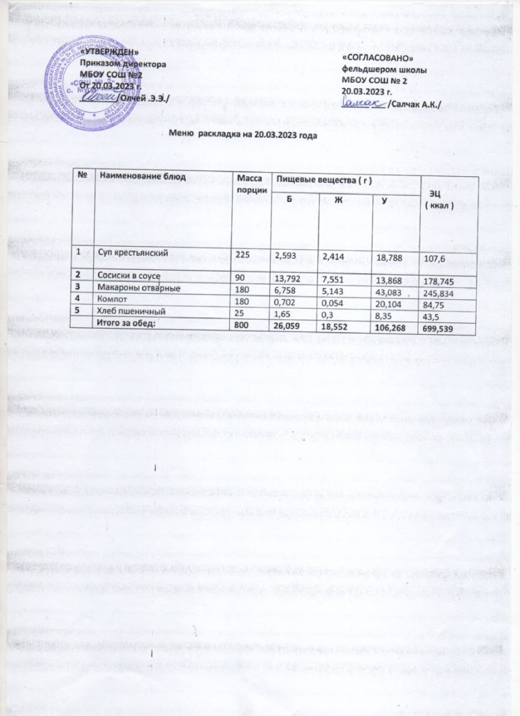 Контрольное меню на 20.03.2024