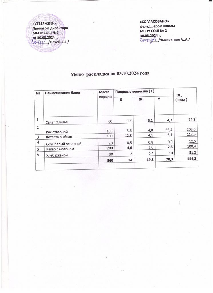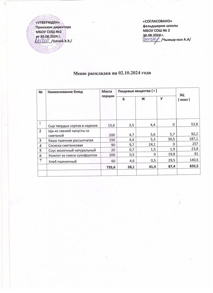Меню на 2 октября