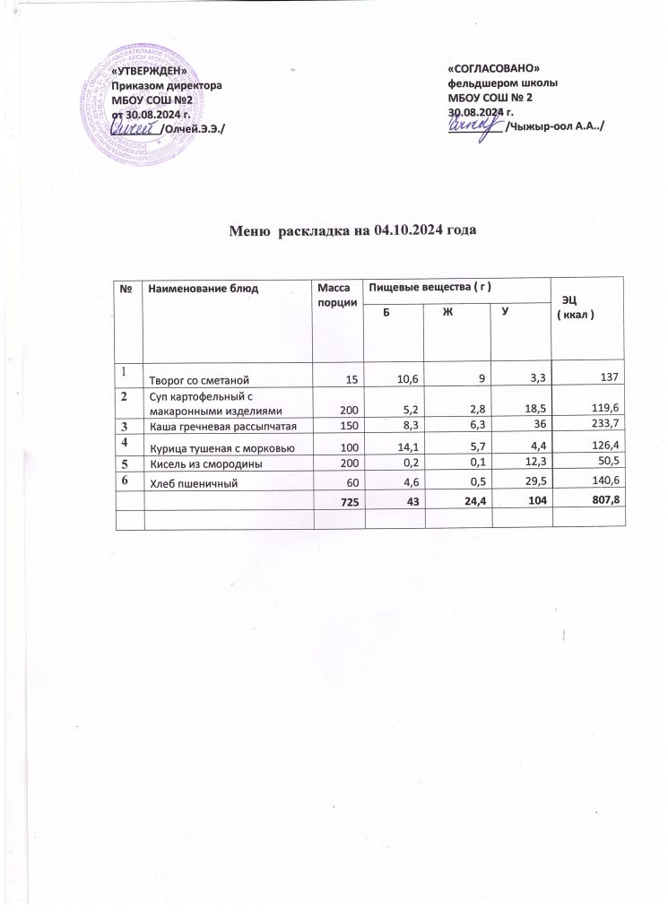 Меню на 4 октября