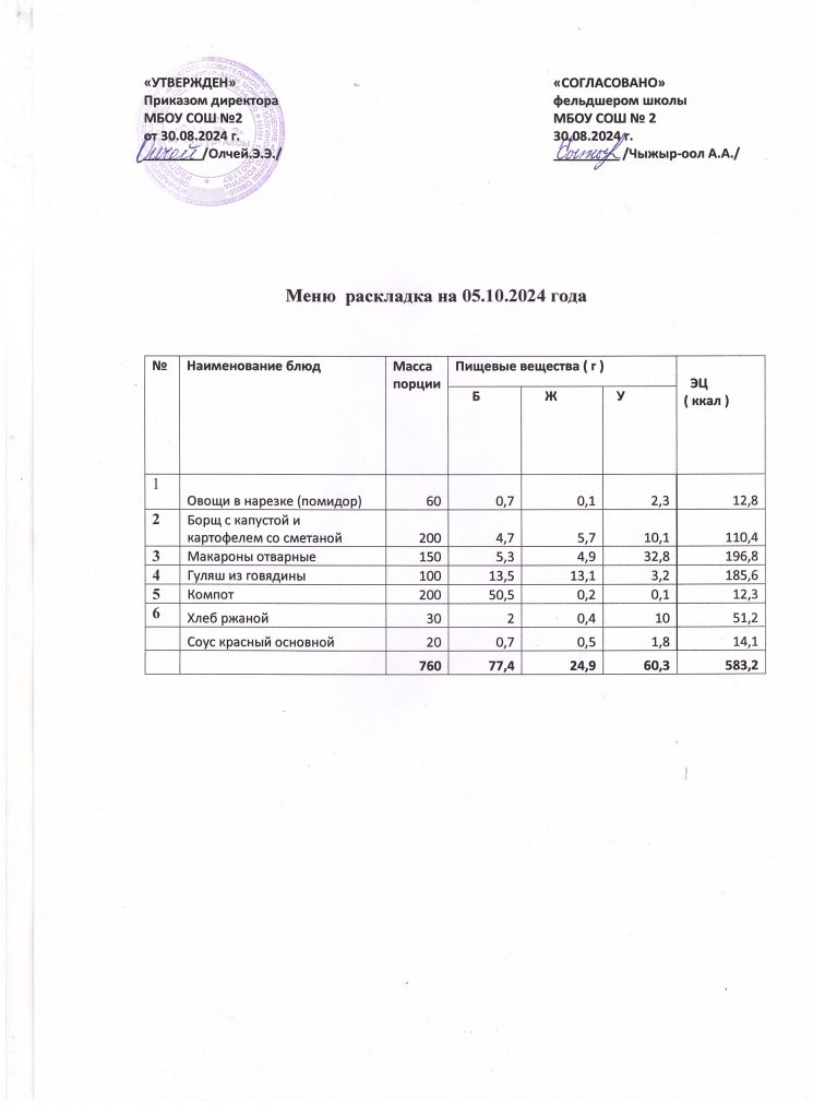 Меню на 5 октября