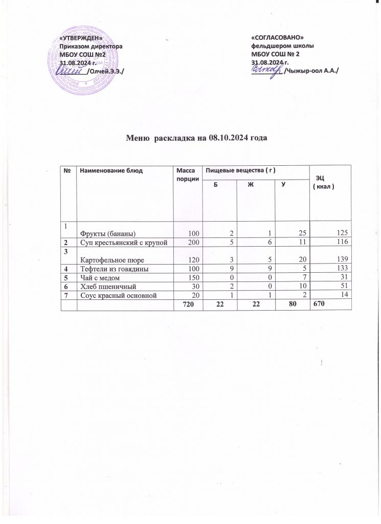 Меню на 8 октября