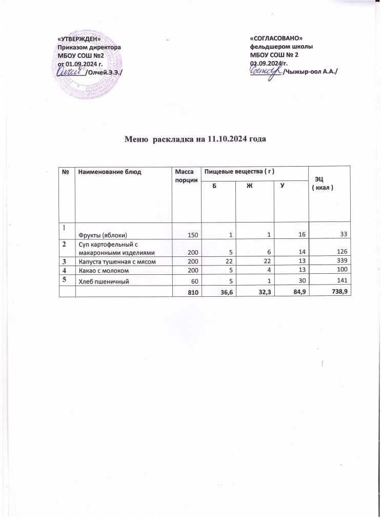 Меню на 11 октября