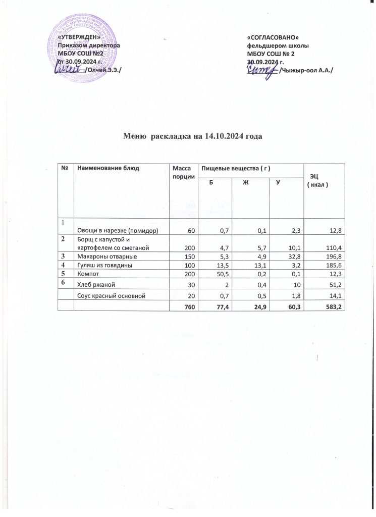 Меню на 14 октября