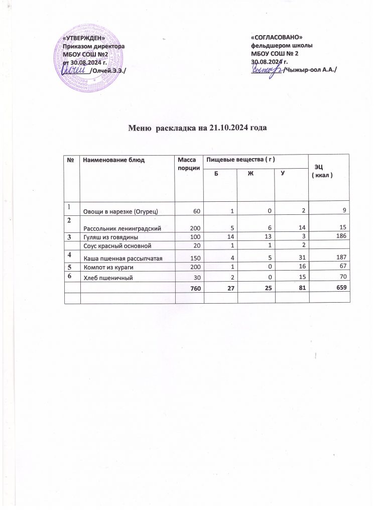 Меню на 21 октября