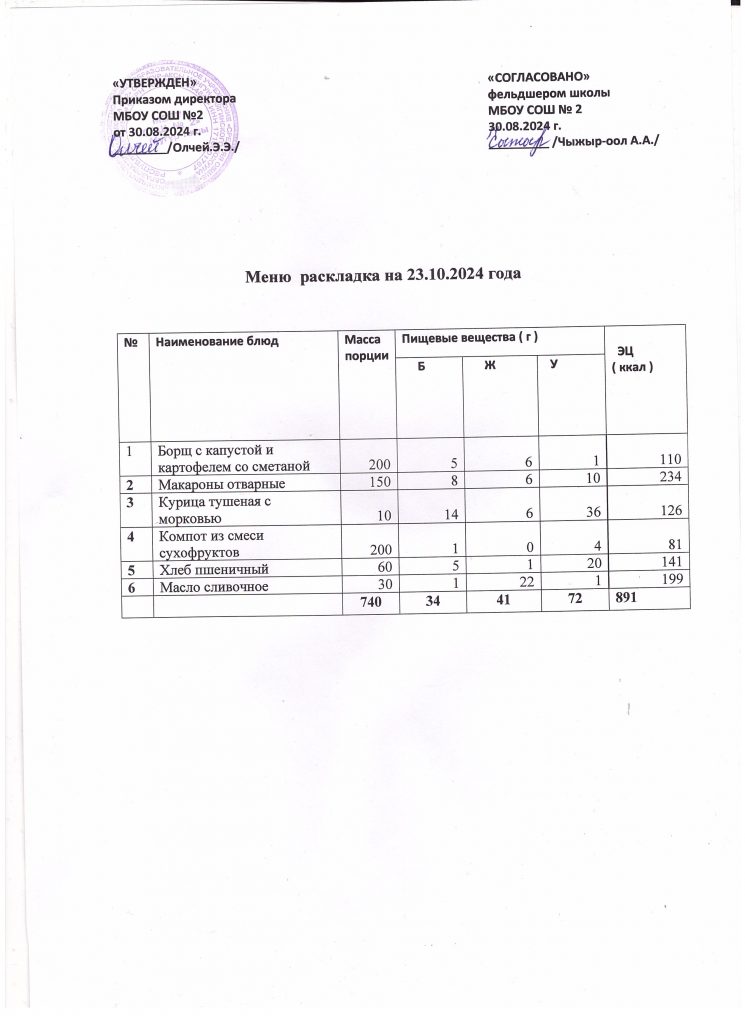 Меню на 23 октября