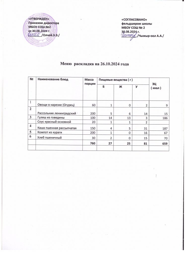 Меню на 26 октября